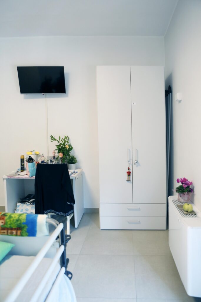 Ogni camera è dotata di sistemi di chiamata d’emergenza, letti regolabili elettricamente e spazi facilmente accessibili, al fine di garantire la massima sicurezza e autonomia possibile. L’attenzione alla cura dell’ambiente contribuisce a creare un clima rassicurante, dove gli anziani possono sentirsi a proprio agio come a casa.